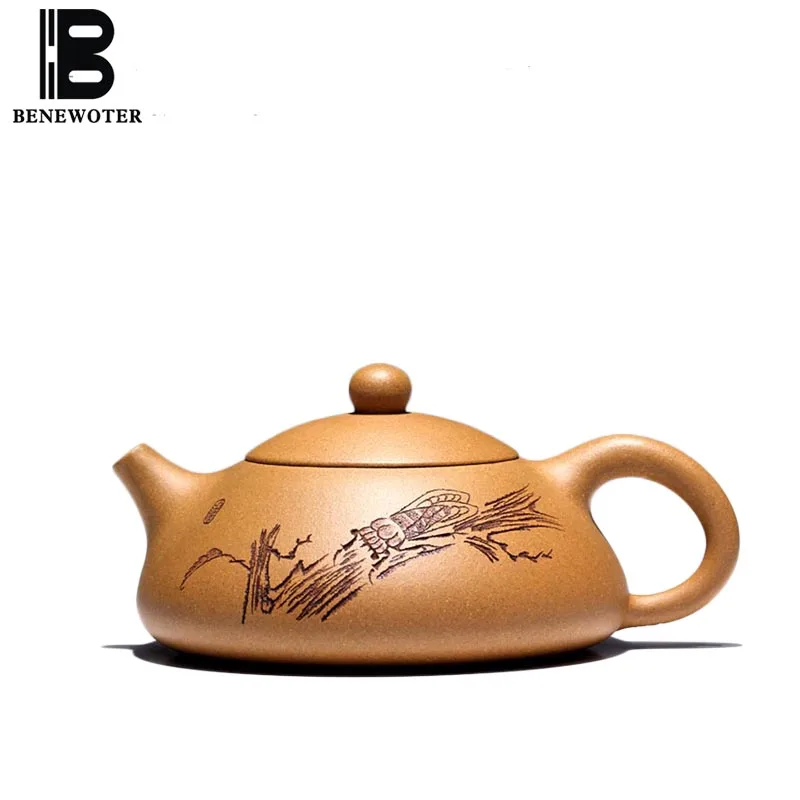 BEST QUALITY 210cc Yixing Purple Clay Teapot All Handmade Raw Ore Gold Duan Mud Zisha Stone Scoop Pot Art Drinkw