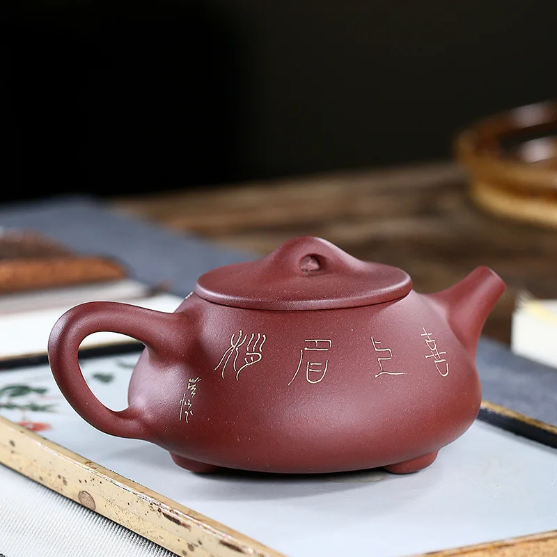 BEST QUALITY Place Of Origin Yixing Manual Plum Blossom Stone Drum Dark-red Enameled Pottery Teapot Raw Ore Brig