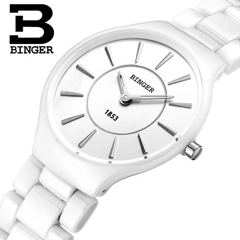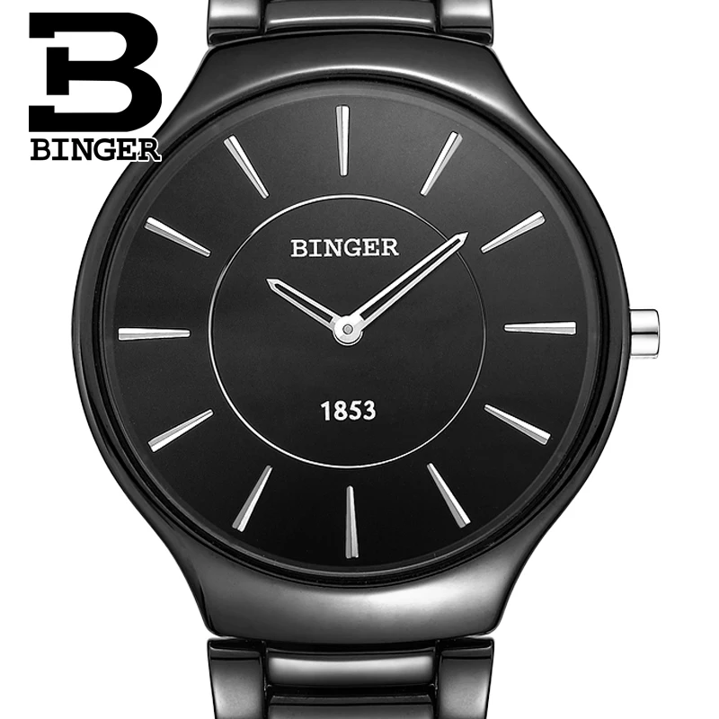 ORIGINAL Genuine Luxury Brand Mens watch ceramic Women quartz table BINGER slim and stylish for couple watch