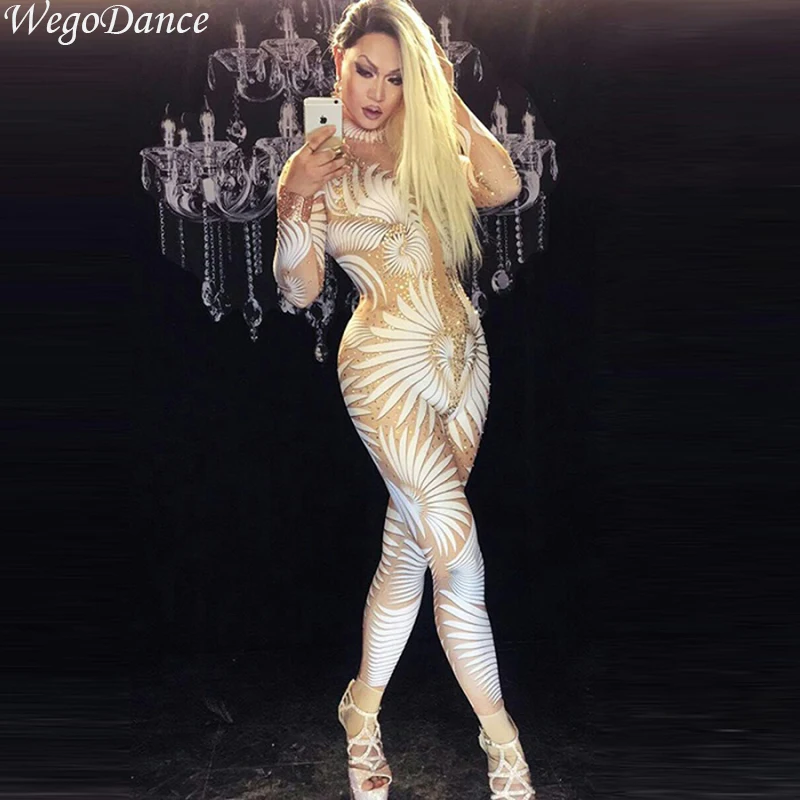 new Sexy Geometric Patterns Jumpsuit Sparkly Stones Bodysuit Stage Wear Women'S Celebrate Female Si