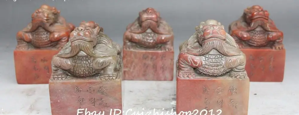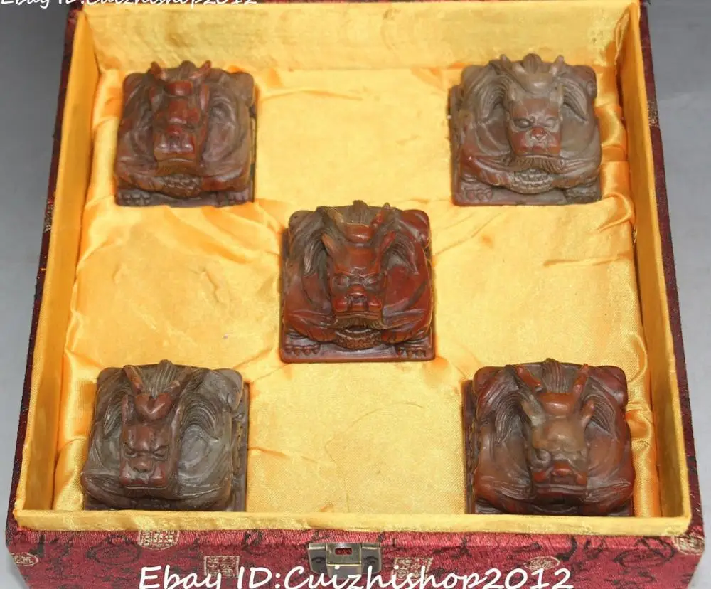 Review Top 9" Unique Natural Shoushan Stone Dragon Dragons Imperial Seal Stamp Signet Set
