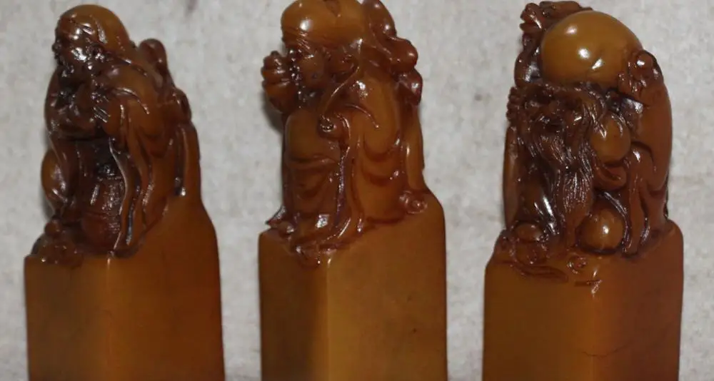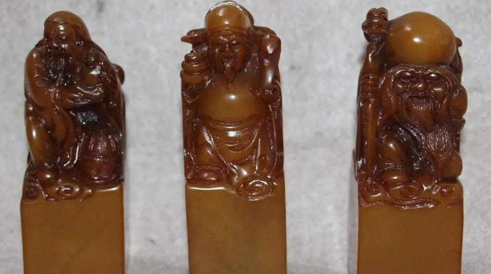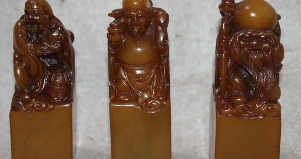 REVIEW TOP SELLER Natural Shoushan Stone 3 Longevity God Fu Lu Shou Imperial Seal Stamp Signet Set